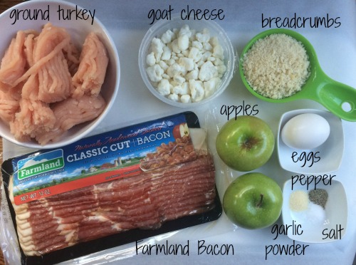 My recipe for Bacon Wrapped Goat Cheese & Apple Stuffed Turkey Meatballs came about from my need to change up dinner. I looked in my fridge and saw some ground turkey and a package of Farmland Bacon, and started thinking about how to put those two together for a meal that everyone would like. I dug around a bit more and found some goat cheese. The goat cheese made me start thinking about apples and all of the sudden I had an image of the most delectable meatballs ever.