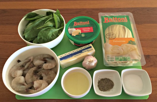 - Heat the Buitoni® Alfredo sauce and toss the pasta, shrimp and spinach together.