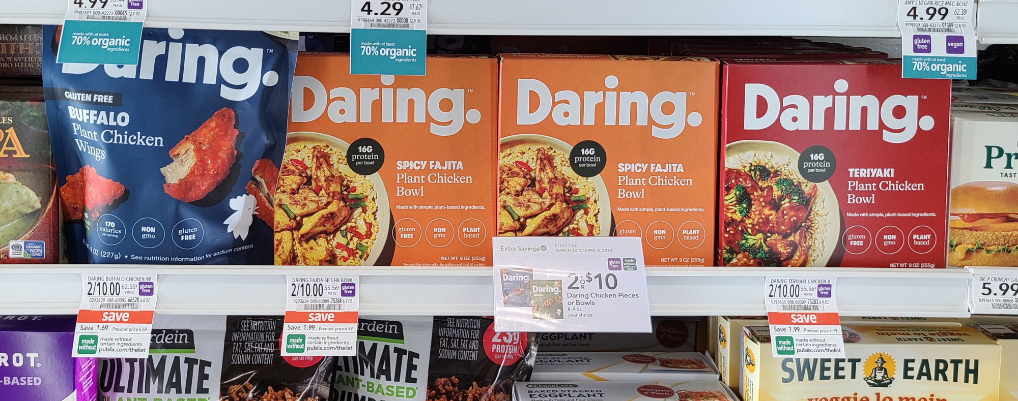 Head over to Publix for a deal on Daring Plant Chicken Pieces or Bowls. Use the sale and cash back offer to pay just $4 the next time you shop!