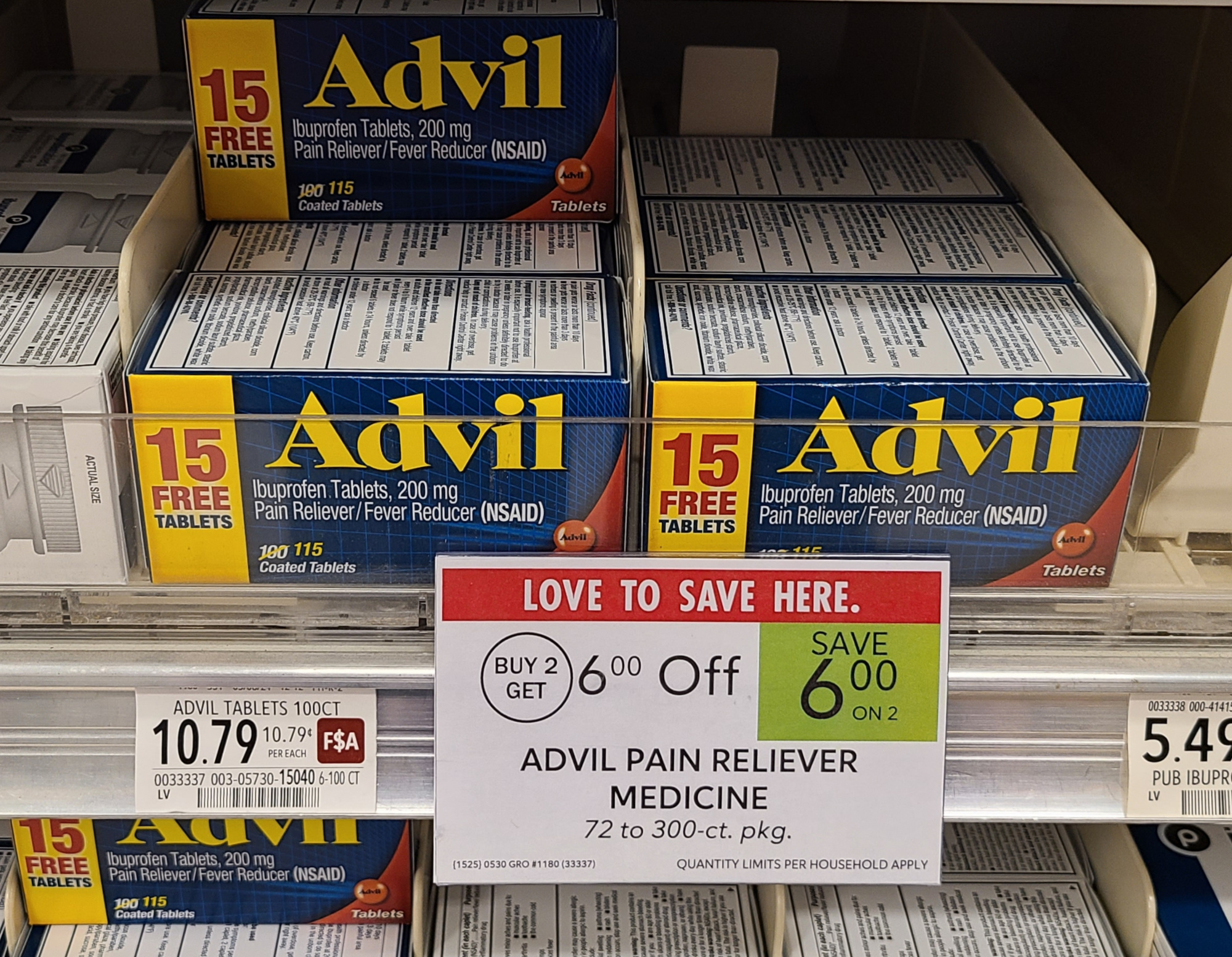Gather your coupons and get a big discount on Advil pain meds. After sale and coupons, you can pick up the bottles for as little as $5.79… that’s a savings of $5 per bottle!