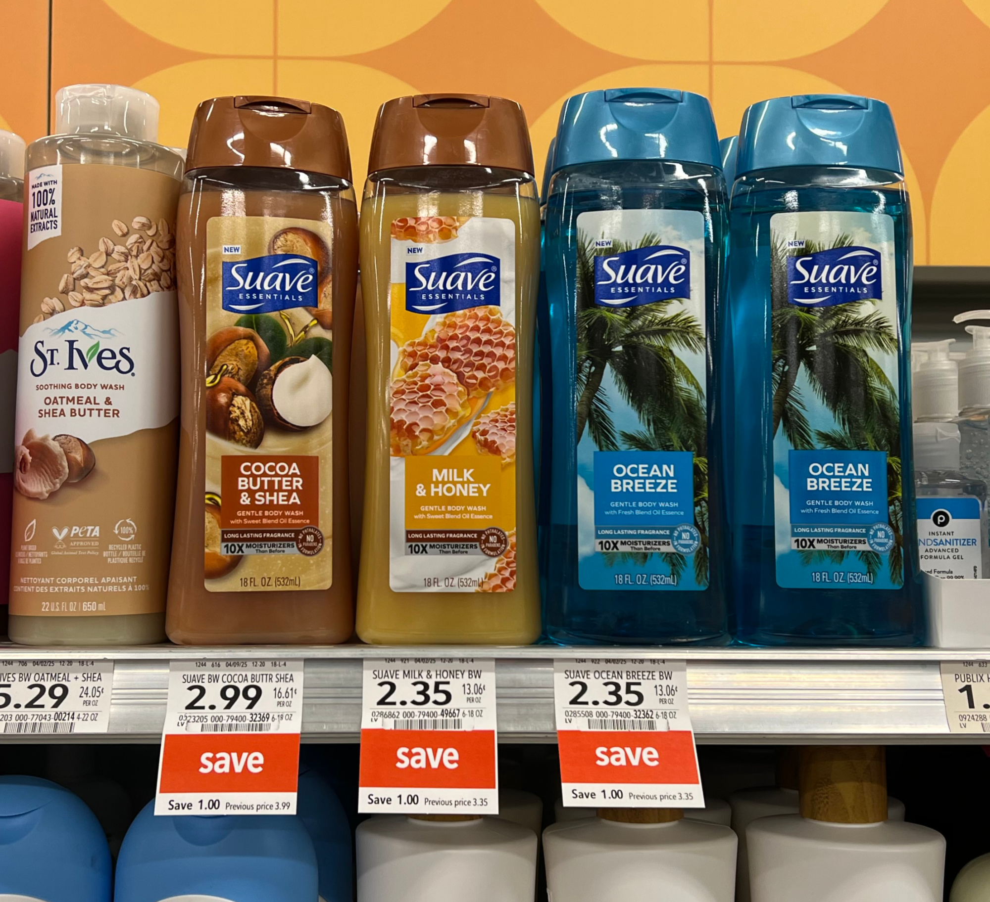 Suave Body Wash, 18 oz, $2.35 – $2.99 (reg $3.35 – $3.99)
