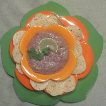 For the first recipe I wanted to do a bean dip. We mainly eat black beans here at my house…so naturally that is where I started. Black beans are a great source of fiber and protein and of course they are delicious! I played around a bit and the final version of my recipe is absolutely fabulous! Maybe I am a bit biased but this may be the best dip I have ever had! What is great is that this is a healthier dip. I chose naturally low fat and low calorie ingredients. This dip is also fabulous as you just toss everything into the food processor and let it do the work for you!