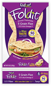 I know many of us pack a lunch box each day. Why not send a peanut butter & banana sandwich on Foldit. My son love this as a change from the typical PB&J. The Foldit is perfect for the kiddos – all the filling stays in…no matter what you fill it with! Besides being delicious, Flatout Foldit is a good choice for your family. You get half the calories and half the carbs that you’d find in two slices of 100% whole wheat bread – just another reason to pack that lunch box with Flatout!