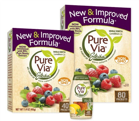 Simply add the great, pure taste of all natural, zero calorie Pure Via® throughout your day to your coffee, tea and other favorite foods. Made from the stevia plant, Pure Via® contains only simple, Non-GMO* ingredients and natural flavors.