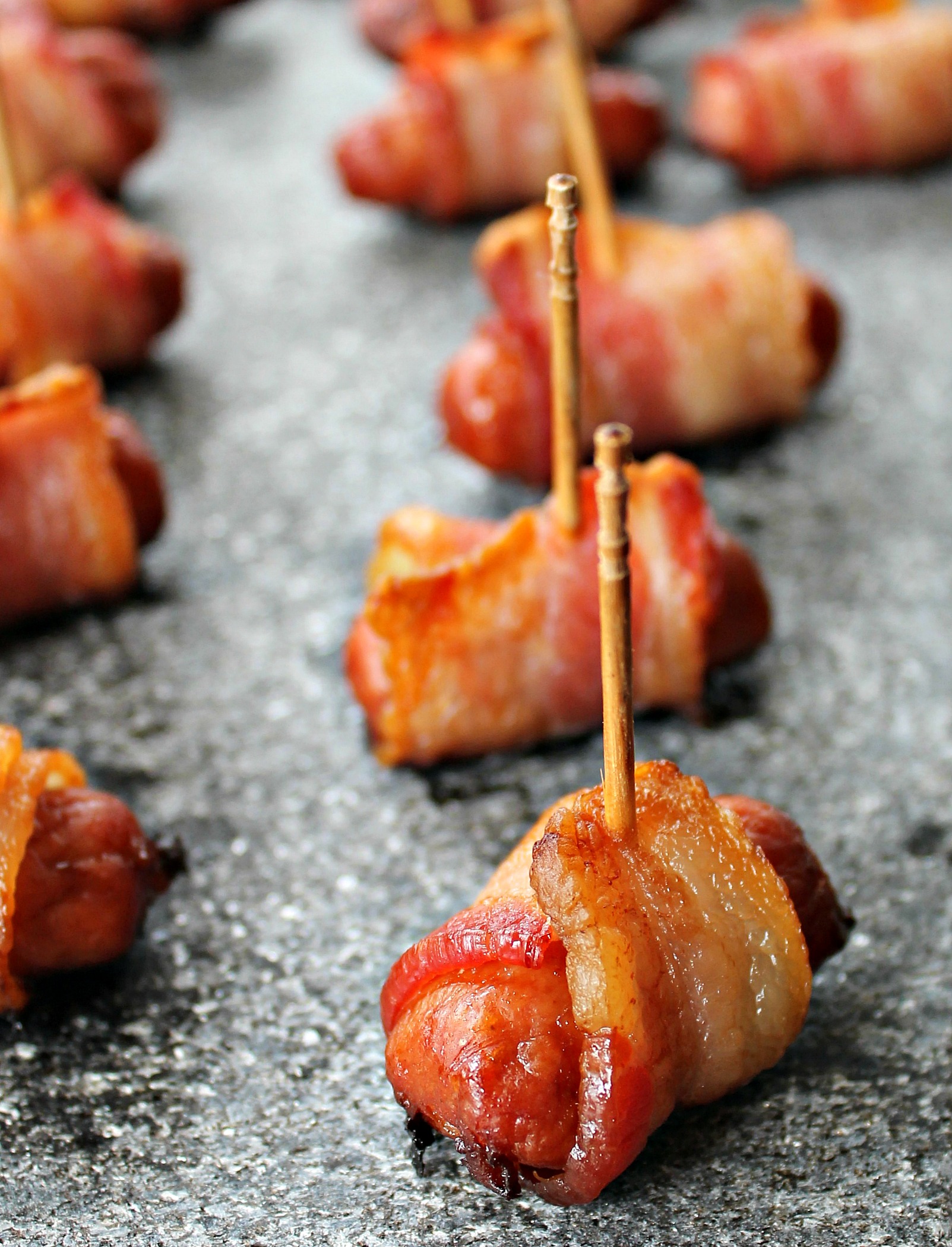 I will use the piggies in the blanket recipe but add some brushed brown sugar to the bacon.