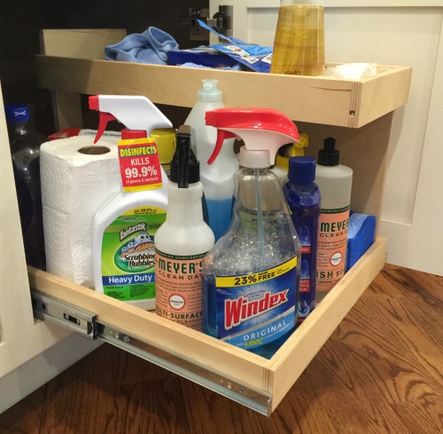 You want to keep your cleaning supplies handy. Always keep your supplies in strategic locations and you’ll save time and you might even be more likely to actually use them! Bathroom cleaning supplies should be kept in the bathroom cabinets or linens closets not in the kitchen. Think about how you use the products and keep them in the most convenient location so that they are easily accessible so you will actually use them when it comes time to do the cleaning. You might even consider having multiple products spread over your home for easy access. Rather than trying to keep up with the last place you used the Windex®, keep a bottle in each bathroom so that you can easily touch up mirrors and sinks as needed!