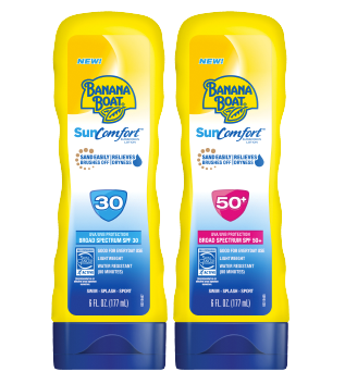 Try new Banana Boat® SunComfort™ Lotion Sunscreen. It’s perfect for the beach. It allows sand to easily brush off and moisturizes- so you’re covered from more than just the sun!