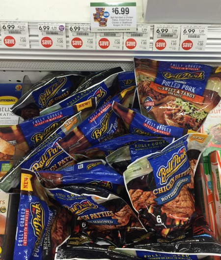 • Ball Park Beef or Chicken Patties, Pulled Pork or Chicken or Steakhouse Burgers, 14 to 17.4 oz, $6.99