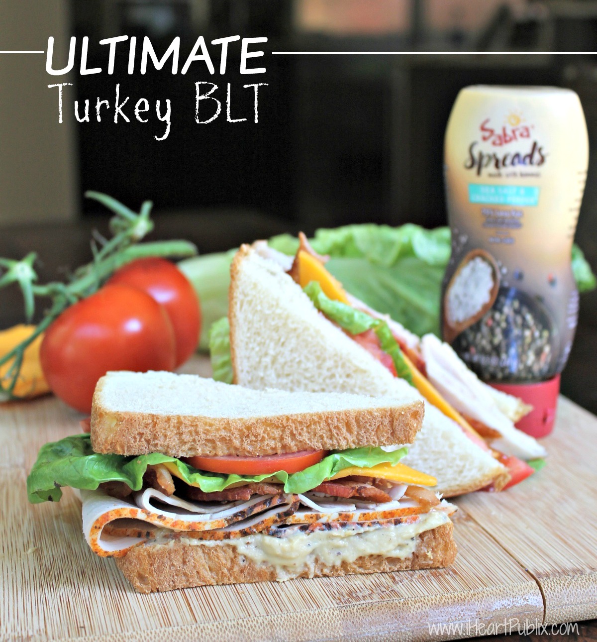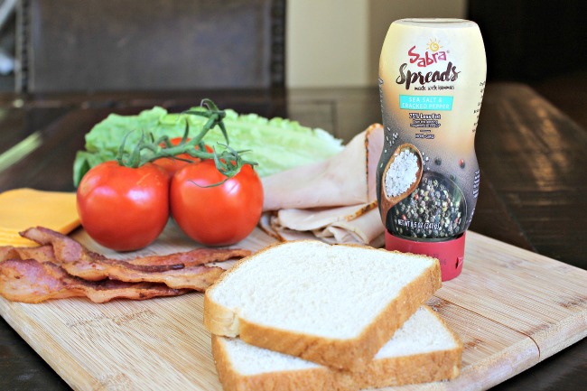 - Add a generous amount of the Sabra Sea Salt & Cracked Pepper Spread to one piece of bread then layer with turkey, bacon, cheese, lettuce and tomato.