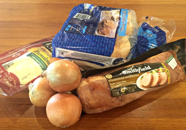 I love to use the Steakhouse Mushroom Marinated Fresh Pork Loin Filet as it’s already slow-marinated and perfectly seasoned so that I simply open the package and it’s ready to go. With this recipe, caramelizing the onions takes the most time so I start those and then begin chopping the pork loin. In less than 30 minutes, I can have a big batch of hearty sandwiches on the table for everyone to enjoy!