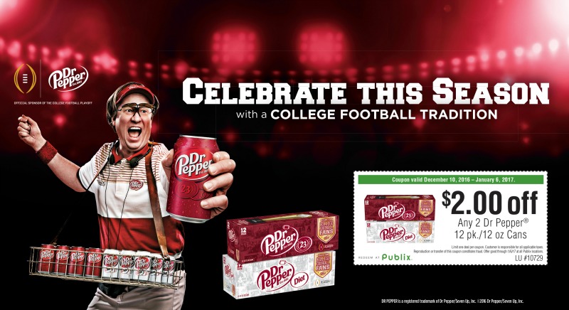 You better get ready for the game and stock up on your favorite Dr Pepper varieties while you can save big at Publix. Whether you need to stock your fridge for guests or only need enough for your own personal game day viewing, be sure to have plenty of game day refreshment on hand.