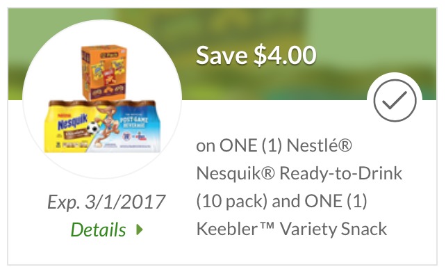 You’ll also get a great deal on Nestlé® Nesquik® Chocolate Low Fat Milk. With 8 grams of protein and 40% of the daily value of calcium, you get a delicious drink that the kids will love and you’ll feel good about serving.