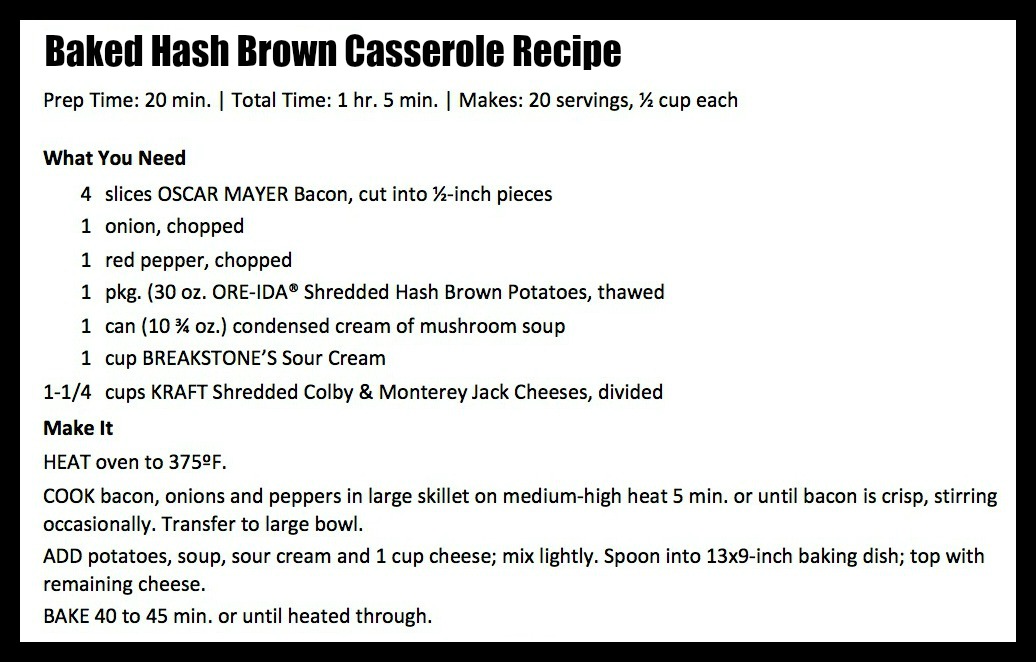 This Baked Hash Brown Casserole is a great example of a dish that’s the perfect combination of taste, ease in preparation and cost. It takes just a few minutes to prep and then it goes in the oven to bake up. I don’t have to spend a ton of time in the kitchen but I get a dish that everyone loves!