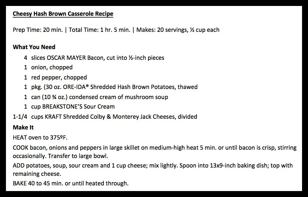 This Baked Hash Brown Casserole is a great example of a dish that’s the perfect combination of taste, ease in preparation and cost. It takes just a few minutes to prep and then it goes in the oven to bake up. I don’t have to spend a ton of time in the kitchen but I get a dish that everyone loves!
