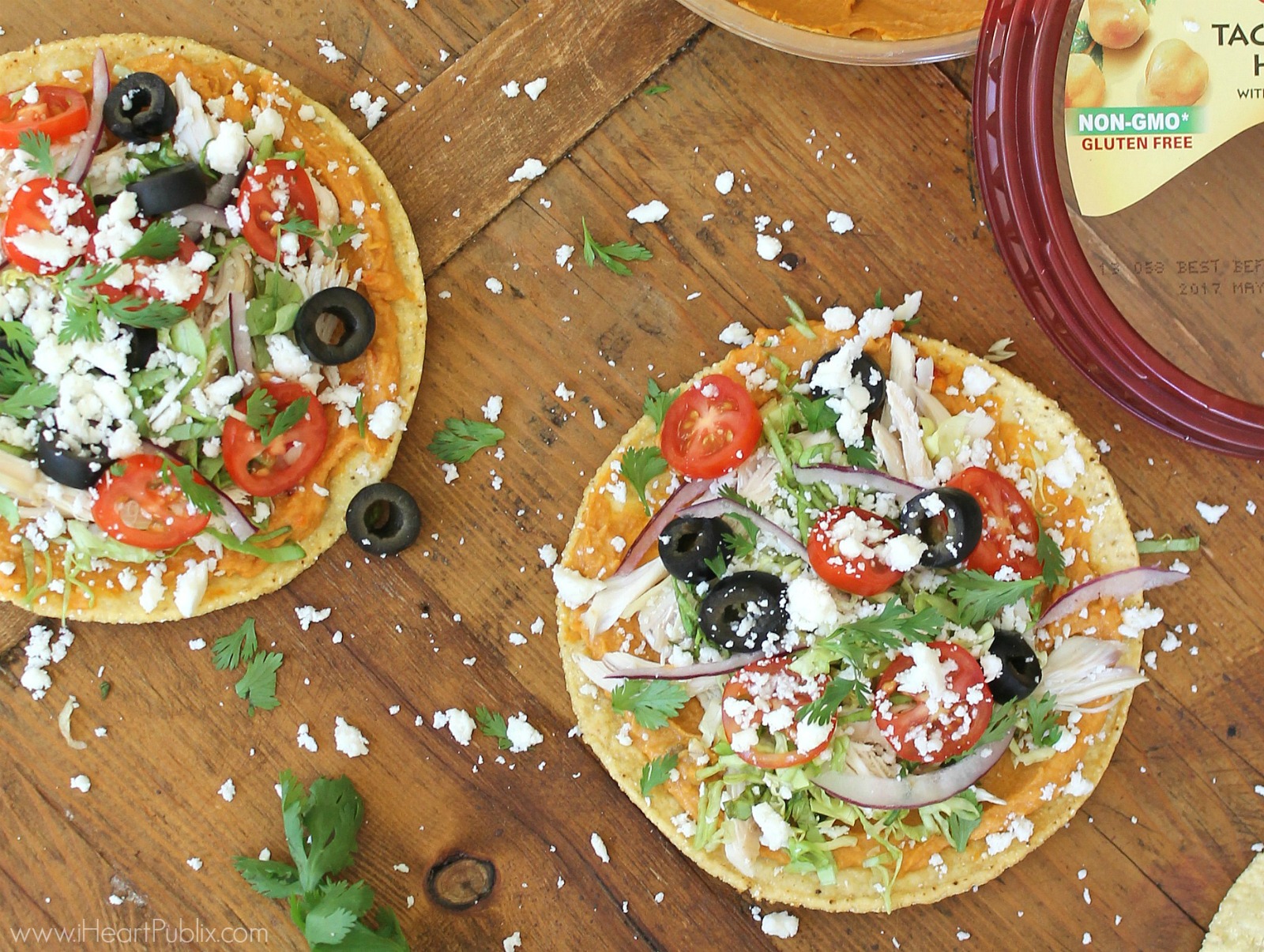 - Spread about 2 tablespoons of Sabra Hummus on the tostada shell