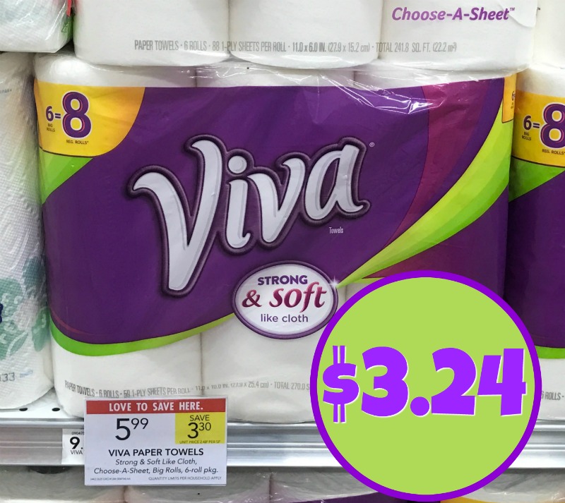 Do you have Viva Paper Towels on your shopping list this week? If not, you’ll definitely want to add them to your list and pick up a pack next time you shop. With the sale and coupon combo you’ll get a pack of paper towels as low as $3.24! That’s a savings of over $5—Wowsa!