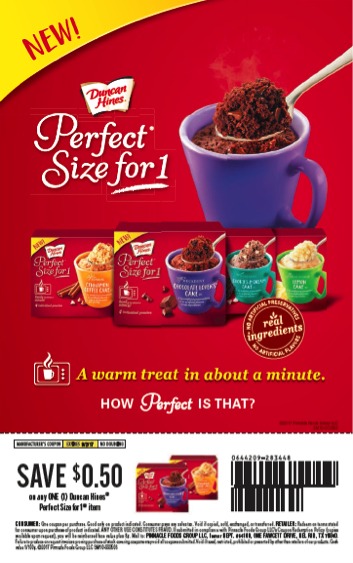 Did you happen to notice the deal on the new Duncan Hines® Perfect Size for 1® products in the Publix ad? If not you are going to be very excited to know that we have a new coupon coming out in the inserts this weekend that makes the deal even better!
