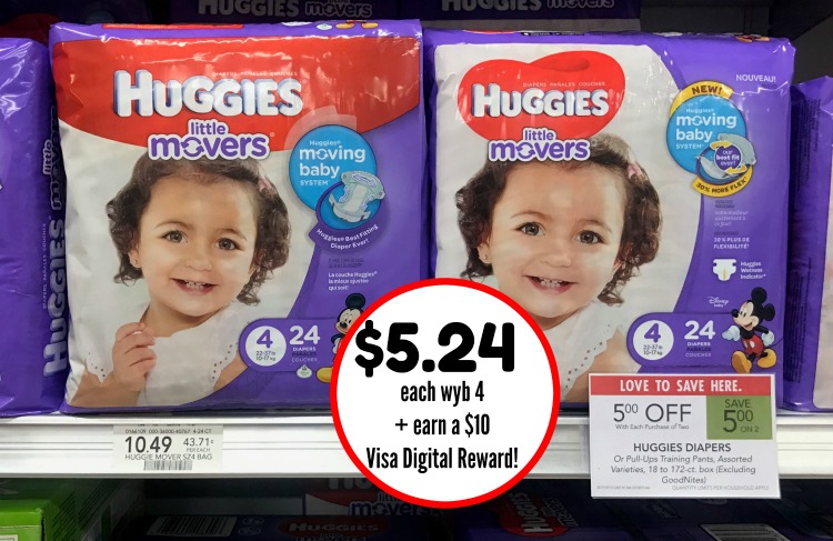 Grab 4 packs and pay $20.96 after sale and coupons + get that $10 Visa Digital Reward! That’s like getting 4 packs for diapers for $10.96 after all discounts!