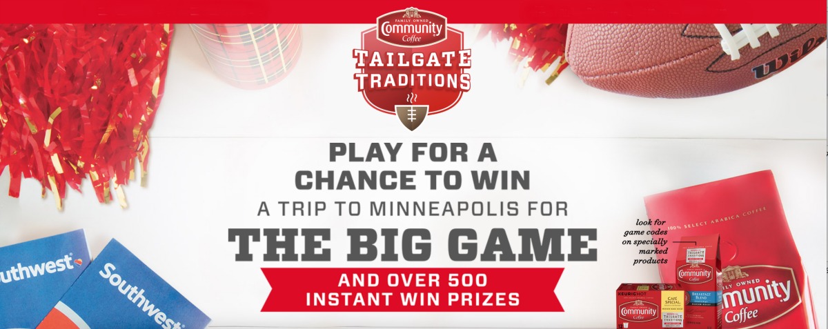 Calling all coffee lovers! I have some great news…the Community Coffee Tailgate Traditions Instant Win Game and Sweepstakes is back and you can play to win one of over 500 instant win prizes plus the chance to win a Trip to Minneapolis for the Big Game!