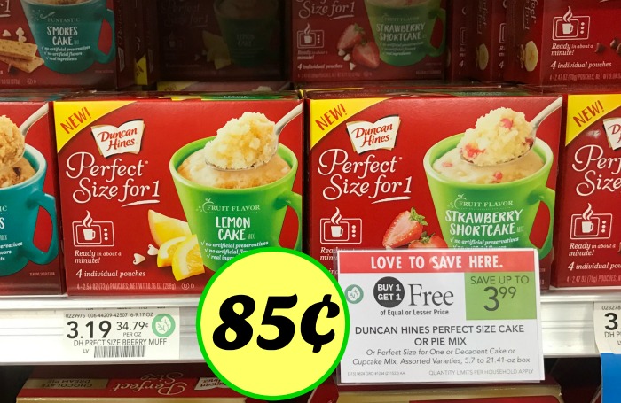 Duncan Hines Perfect Size for One, Assorted Varieties, 5.7 to 21.41 oz, BOGO $3.19