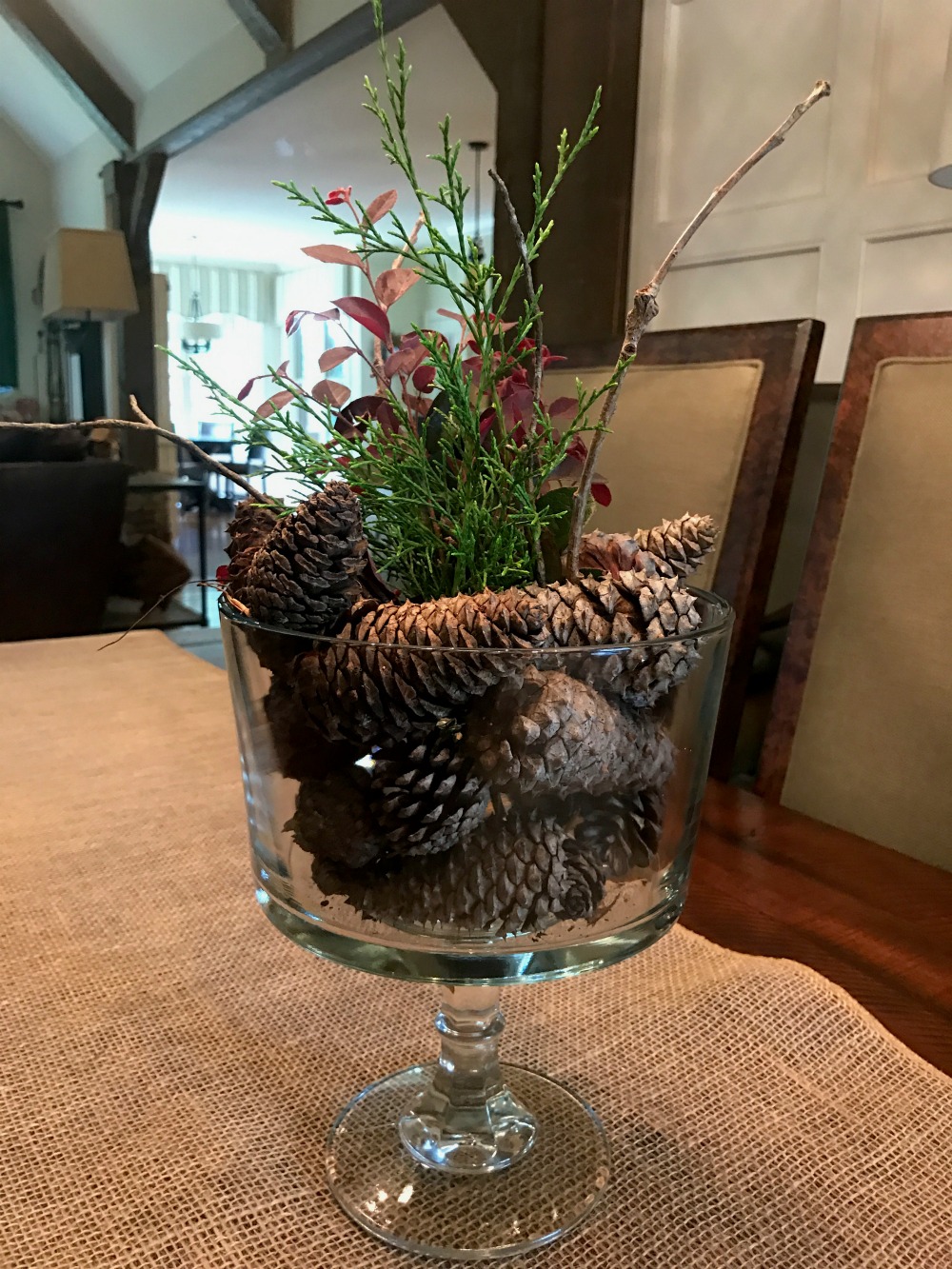 I always collect huge pinecones when I visit my mom in NC, then I make Autumn centerpieces with them!