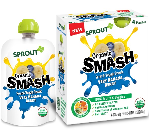 It’s time to start stocking up on snacks for back to school! The kids will be working hard and will need to refuel often. Make sure you are giving your kids a tasty snack that is wholesome and good for them, too. Sprout® Organic SMASH™ pouches are perfect for throwing in the lunchbox, enjoying before gametime, or as an after-school snack.