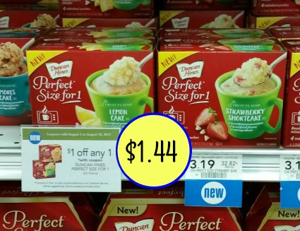 Have you had a chance to stock up on your favorite Duncan Hines® Perfect Size for 1® products yet? If you haven’t taken advantage of the deal you still have time to grab a tasty treat at an amazing price. We have a couple of coupons that combine to make the boxes as low as $1.44.