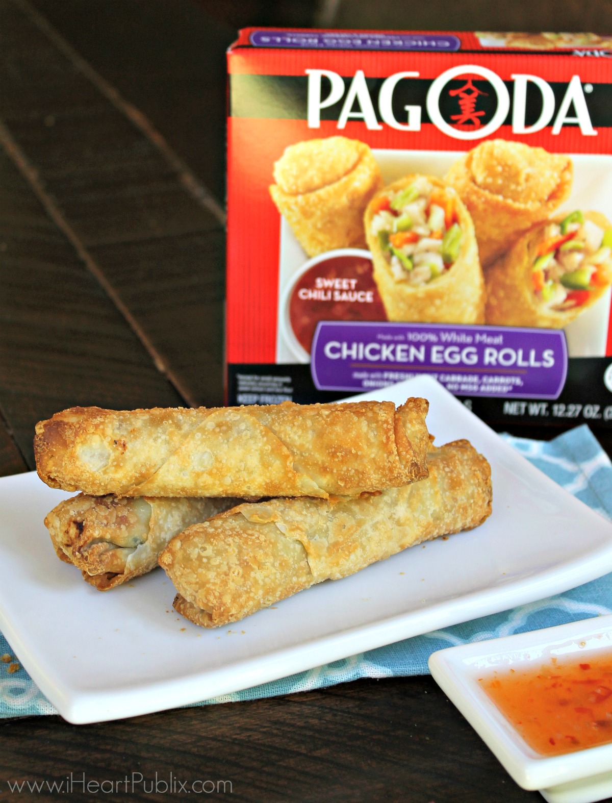 Pagoda Egg Rolls are filled with quality ingredients like 100% white meat chicken and freshly cut vegetables. Those tasty ingredients are then rolled into wrappers made from scratch. The taste is complete when dipped in that tempting Sweet Chili sauce with just a hint of a kick. A couple of tasty egg rolls and my guys are satisfied…well at least until dinner is ready!