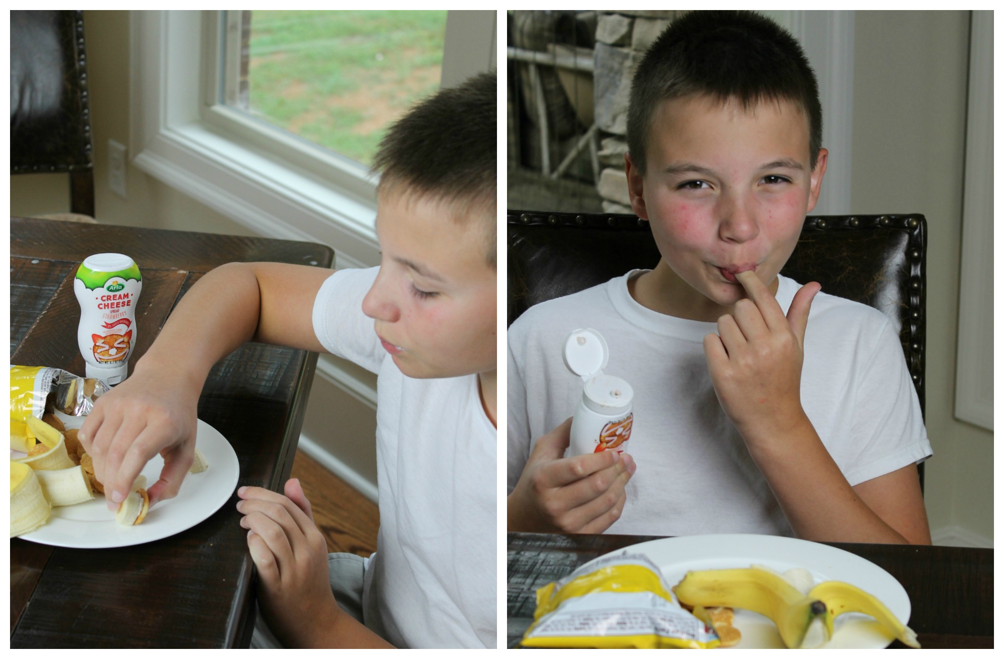 My boys have been using the tubes on everything…including just squeezing the cream cheese on their fingers. I have even caught them squeezing it directly into their mouths! Never a dull moment with boys in the house!