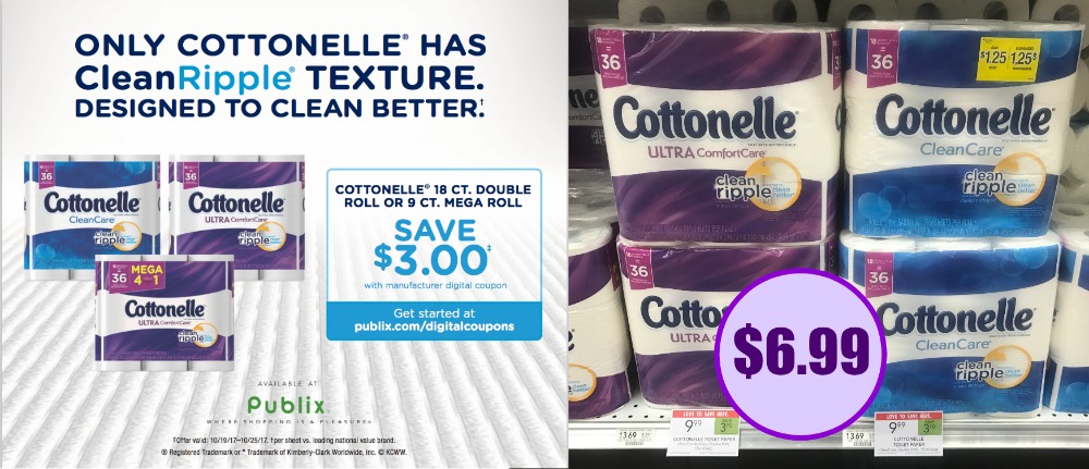 –$3/1 COTTONELLE® Toilet Paper 18ct. Double Roll or 9ct. Mega Roll Publix Digital Coupon