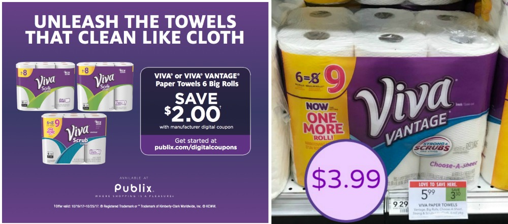 –$2/1 VIVA® or VIVA® VANTAGE® Paper Towels 6-Pack Big Rolls Publix Digital Coupon