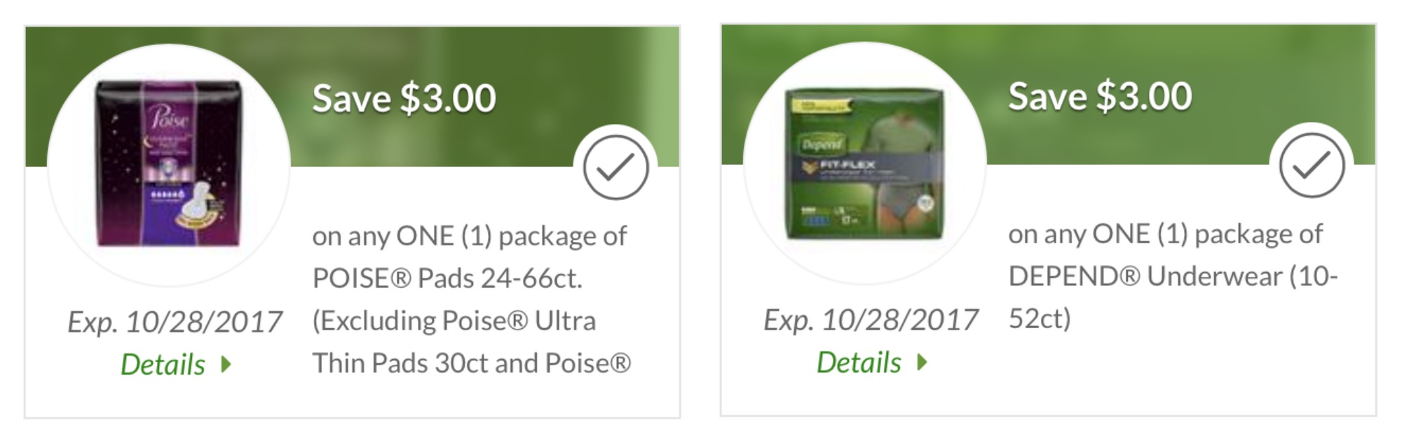 -$2/1 Depend Underwear, 10 to 32 ct, Guards for Men, 52 ct, or Poise Pads, 24 to 66 ct (Excluding Poise Pantiliners or Poise Ultra Thin Light Pad 30 ct) Health & Beauty Advantage Buy Flyer In-Ad Publix Coupon (valid 10/21 to 11/3)