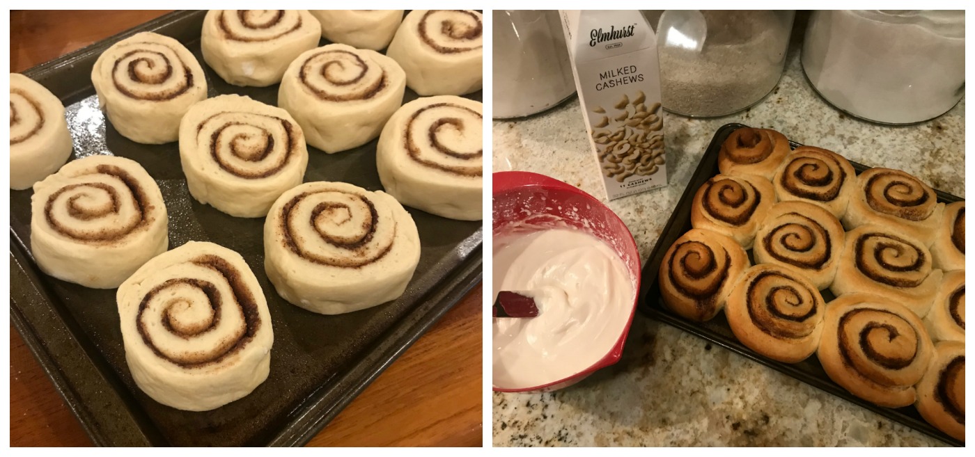 So the first batch I made using the hazelnut milk. Holy moly…they were amazing! I decided that from now on, Elmhurst was the milk of choice for my cinnamon rolls. I just made another batch this week and changed it up by using cashew milk. Once again they were a huge hit.