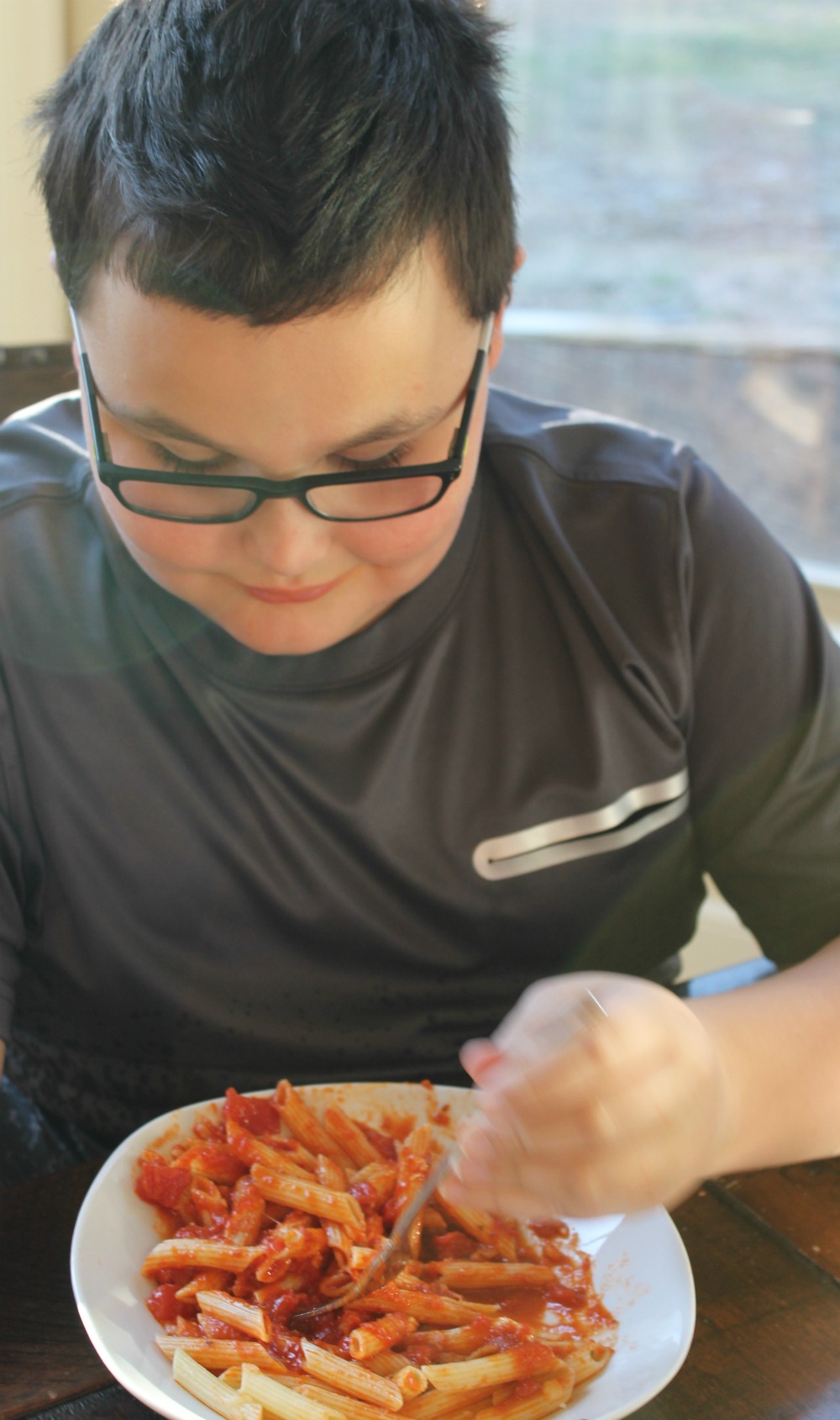 As you can see there aren’t a ton of ingredients needed and even a beginner can whip this one up with ease! I really wish I had gotten a picture of Jeb’s face. If so you would have seen all that tomato sauce all around his mouth…the sure sign of a tasty meal!