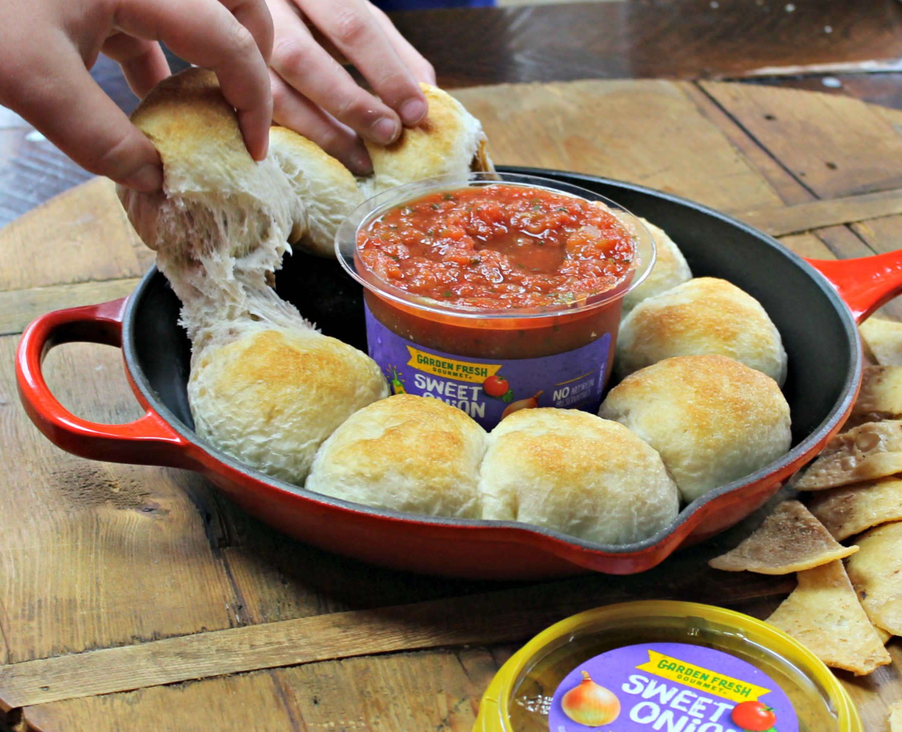 My boys absolutely LOVE these as it combines two of their favorite things in one fun dip-able meal. It’s also crazy simple to prepare— so it’s a hit in my book too! In about 20 minutes you can have a pan full of these yummy pizza pockets ready to serve. Pop a bowl of Garden Fresh Gourmet® Salsa in the middle and you have a meal that will have your family running to the table!