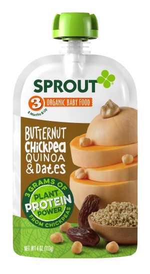Look for the Stage 3 Baby Food Puree flavor—Butternut Chickpea Quinoa & Dates. The puree is recommended for children 8 months and up and offers 3 grams of fiber and 3 grams of plant powered protein from organic chickpeas. It’s a delicious protein alternative to meat and dairy based products. This puree is super tasty, dairy-free and vegan-friendly!