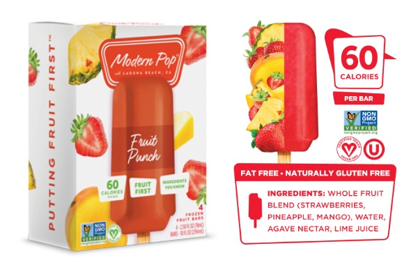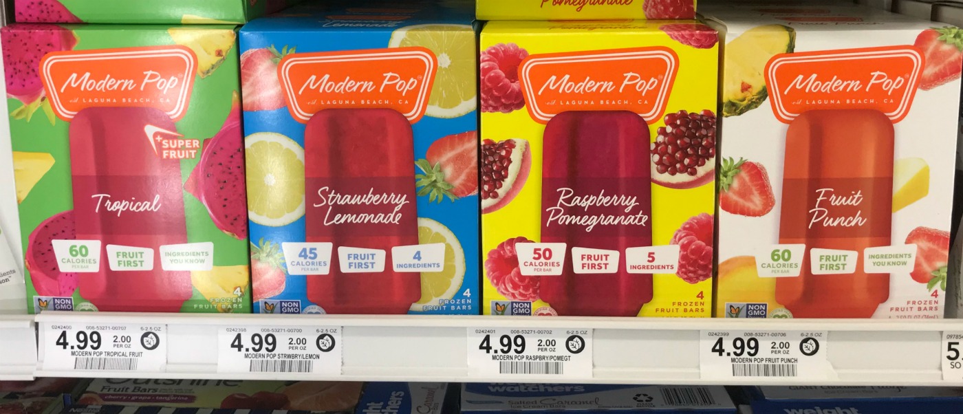 Warm weather also gets me in the mood for a frozen treat. Naturally I don’t want a big calorie laden treat with bathing suit season just around the corner. Luckily I found the new Modern Pop frozen fruit bars. These tasty treats have fruit as the first ingredient and are only 45 – 60 calories per bar depending on which variety you choose.