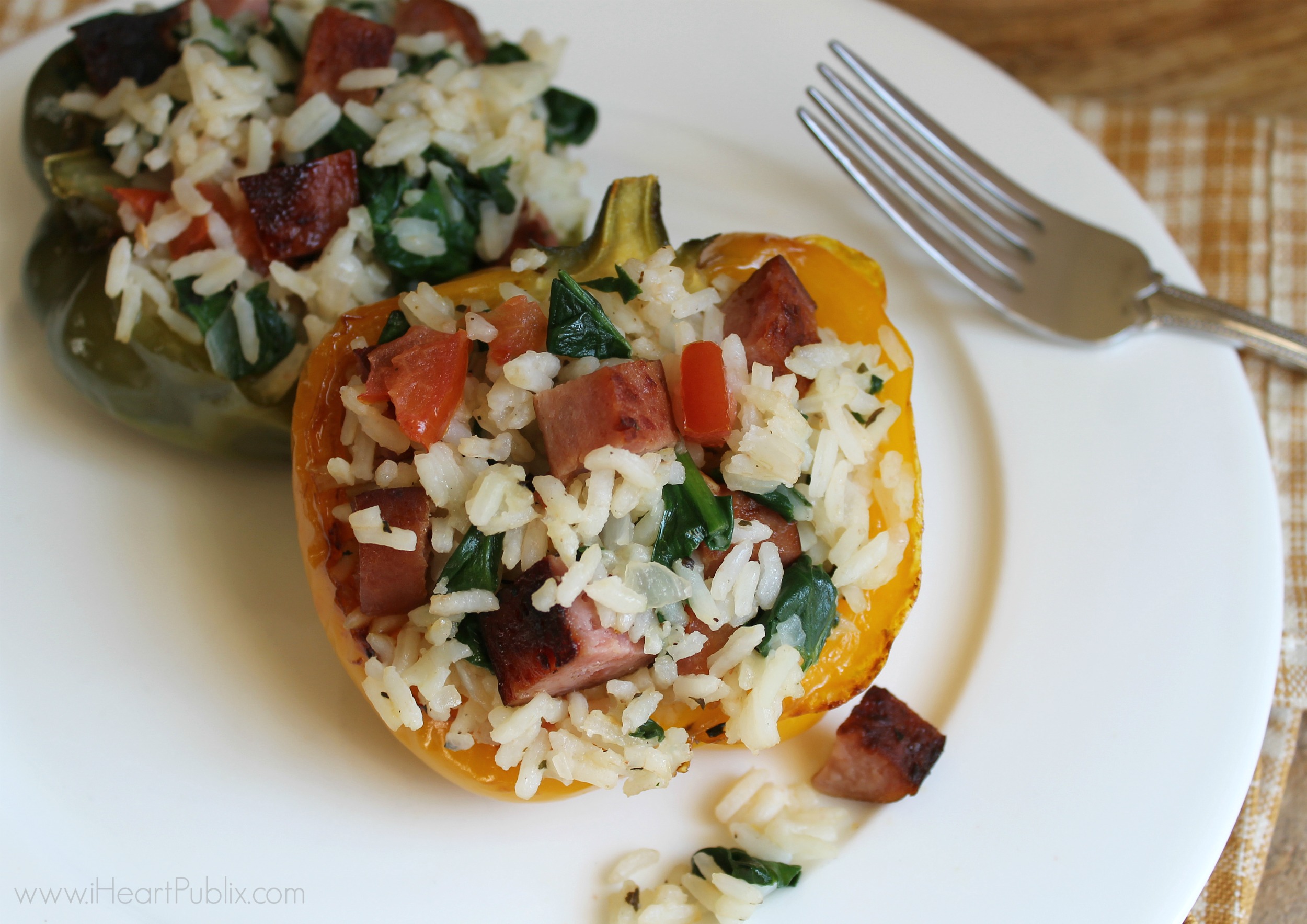 Load your coupon and stop by Publix to get everything you need to whip up this recipe for Smoked Sausage & Rice Stuffed Peppers. The taste is beyond amazing and takes very little effort to prepare. I made this for dinner not too long ago and my guys devoured it. Ok…so the boys wouldn’t touch the peppers but they did eat several servings of the rice/sausage filling. It was such a hit that I added it to my menu rotation!