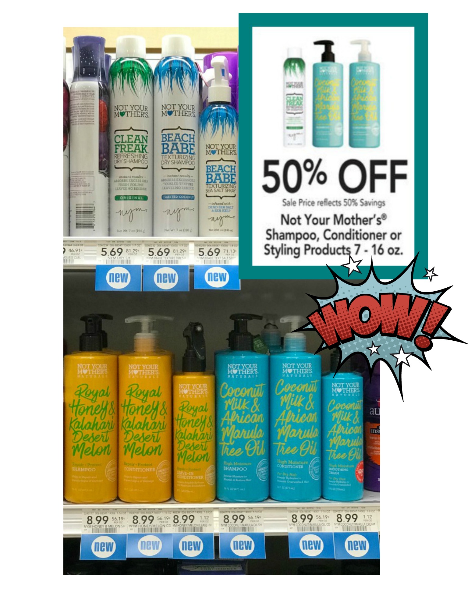Yep, you can get Not Your Mother’s Shampoo, Conditioner or Styling products for a whopping 50% off now through 7/13 at your local Publix.