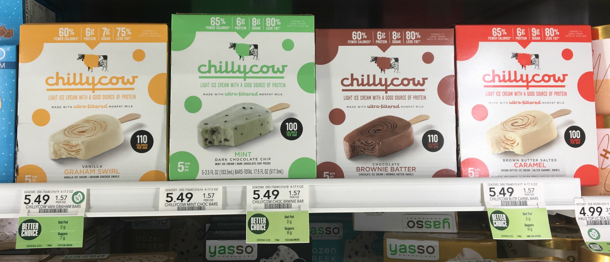 Have you guys tried the new Chilly Cow Ice Cream yet? I grabbed a couple of different flavors a few weeks ago when we had a sale and it has become a new favorite treat at my house. If you haven’t tried this tasty ice cream yet…you are going to love all the different flavors! Chilly Cow Ice Cream is a a healthier alternative to traditional ice cream. Yep, you’ll notice that the bars have those green “BETTER CHOICE” labels right under the price tag. I like seeing those on the foods that I am adding to my cart!