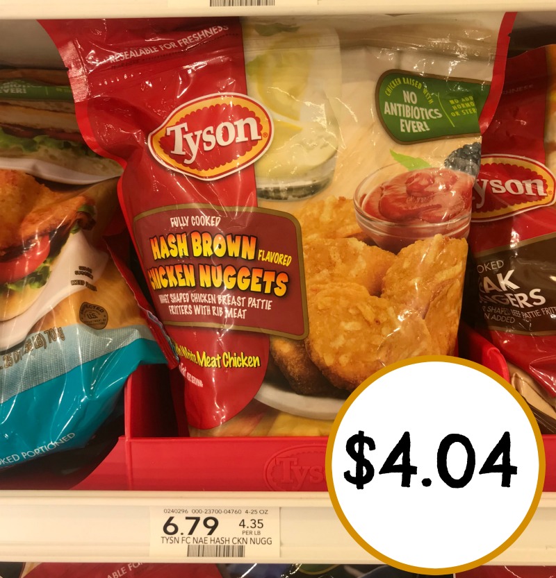 Made with chicken raised with no antibiotics ever, Tyson Fully Cooked Hash Brown Flavored Chicken Nuggets are a delicious addition to any meal. You can We have a big digital coupon AND cash back offer that combine for big savings. You can pick up a great deal and bring home a tasty meal option that your family will love.