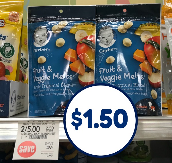 That’s right, with the sale and coupon combo you can get Gerber® Yogurt Blends or Yogurt Melts for half the regular price! Since the coupons work on any of the items you can mix and match and get your kiddo’s favorites…or even try something new without breaking your budget. At just $1.50 per package, you definitely want to add these to your shopping list!