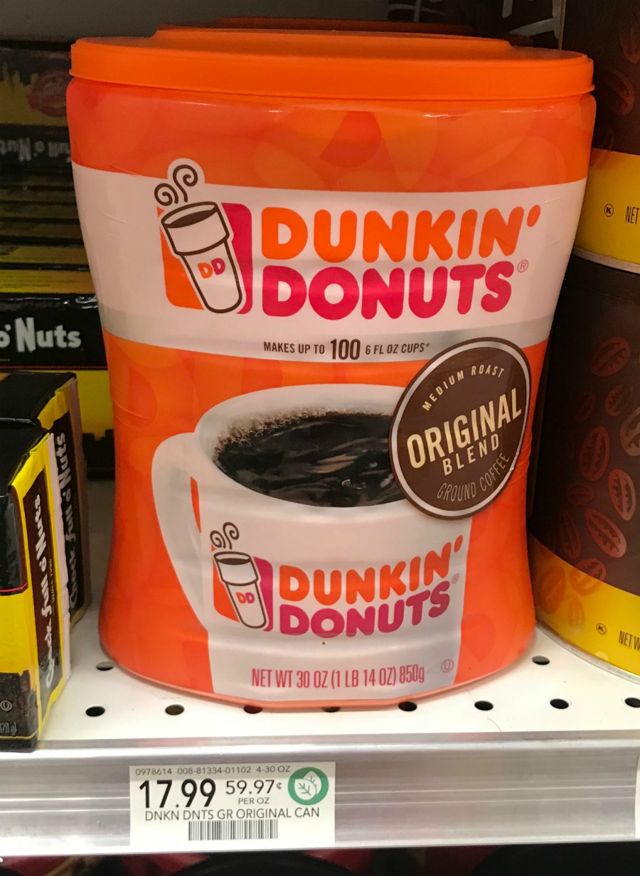Now the Dunkin’ Donuts® that you love is available in a convenient 30 ounce canister. The new package offers the same Dunkin’ Donuts® Original Blend that you love…with a lot more coffee in each container to help you make everyday great!