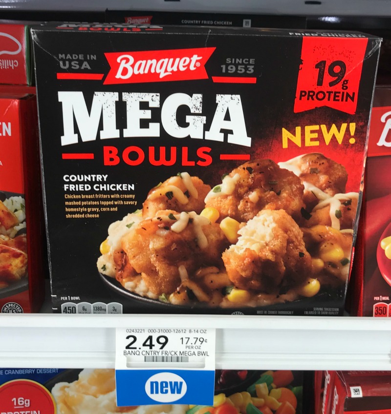 Be sure to grab big savings on the new Banquet Mega Bowls too. Look for two new mega bowls in the frozen aisle at your store: Buffalo Style Chicken Mac & Cheese and Country Fried Chicken.