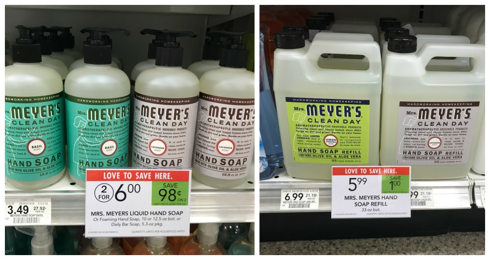 - Mrs. Meyer’s® Clean Day Multi-Surface Cleaner or Dish Soap, 16 oz or Liquid Hand Soap, 12.5 oz or Foaming Hand Soap, 10 oz, Assorted Varieties, 2/$6