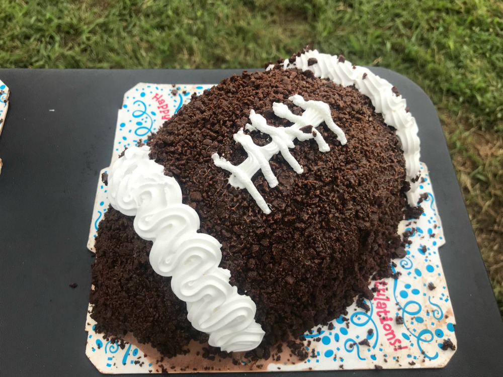 The new season has already begun and they are off to a great start. What better way to celebrate a win than with a Carvel Game Ball cake? I made arrangements to bring a couple of cakes to practice last week to celebrate and help motivate them to keep up the great work.