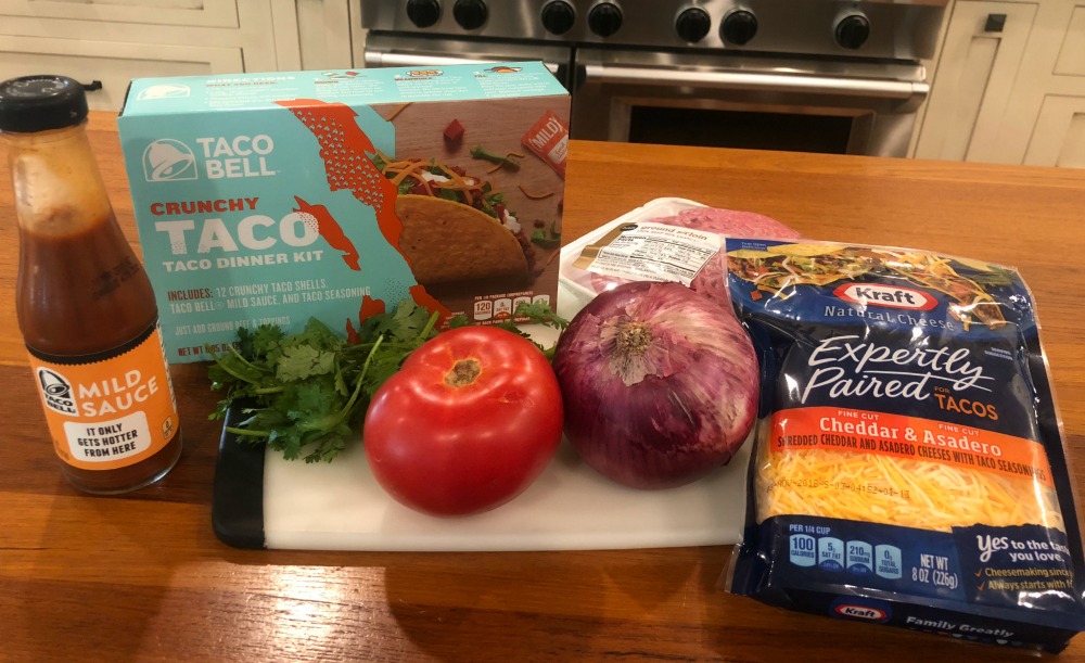 Taco night is also one of my favorites because I can have dinner ready in just minutes with very little effort. Thanks to the convenience of the Taco Bell® Crunchy Taco, Taco Dinner Kit I can have dinner on the table in about 15 minutes. The kit comes with taco shells, Taco Bell® Taco Seasoning and Taco Bell® Mild Sauce. I just add ground beef and water and in no time flat we are ready for a mini fiesta!