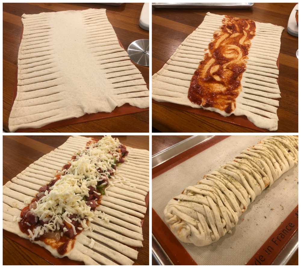 My guys love are huge pizza fanatics. Give them bread, meat and cheese and they are VERY happy guys! I like pizza too, but I need to shake things up every now and again. One of my favorite recipes to eat AND make is my Smoked Sausage & Pepper Pizza Braid.