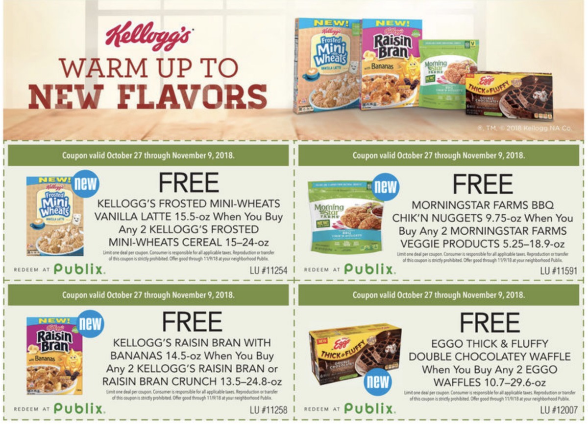 Warm up to new flavors with the big coupons in our current Advantage Buy flyer and try lots of great products for FREE. You read that right! You can check out the latest offerings from Kellogg’s for free with a participating purchase with the coupons valid through Friday, November 9 at your local Publix!