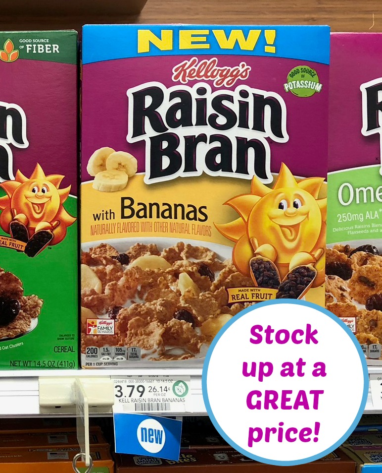 –FREE Kellogg’s Raisin Bran With Bananas, 14.5 oz, wyb (2) Kellogg’s Raisin Bran or Raisin Bran Crunch, 13.5 to 24.8 oz Grocery Advantage Buy Flyer “Extra Savings” In-Ad Publix Coupon (valid 10/27 to 11/9)